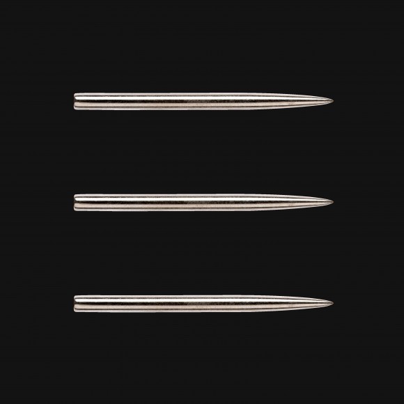 Ezüst,acélból készült, steel darthegy 3db/csomag. Darthegy cserélő készülék szükséges hozzá. ( nem menetes hegy, fix steel szettekhez)32 mm hosszú hegyek, amiből egy átlagos dart testbe 5-6 mmfog belemenni, a dart testbe bele sajtolt fémhegy hossza kb. 26-27 mm lesz.A feltüntetett ár 1 csomagra vonatkozik.