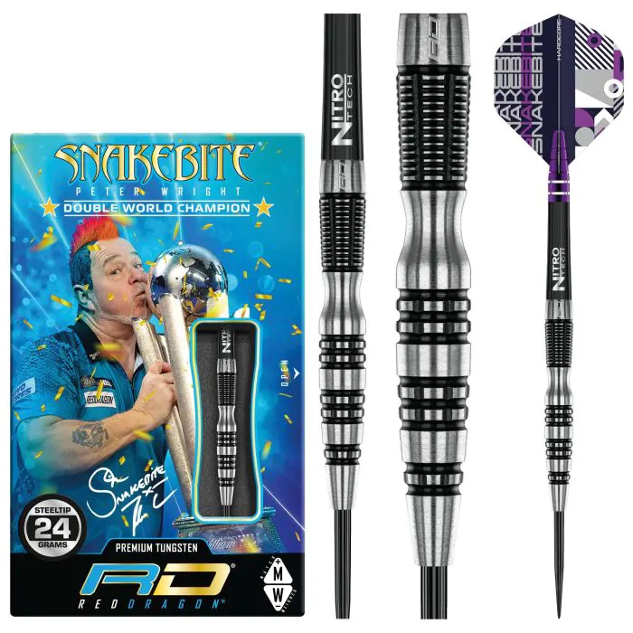 Dart szett Red Dragon steel Peter Wright Snakebite Black Racer, 24g, 90%