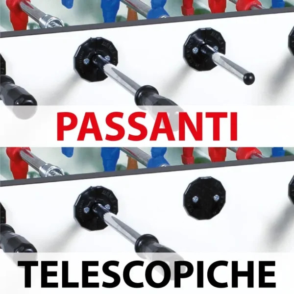 – Átmenő rudak: krómozott acél, 16 mm átmérőjű, közvetlen préseléssel rögzített, törhetetlen műanyagból készült piros/kék bábukkal. – Bábuk talpa: classic.