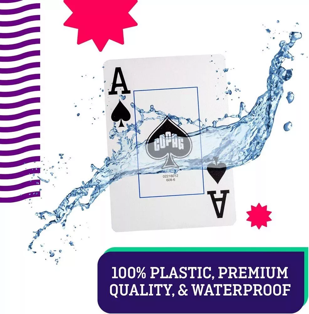 ANYAG: A COPAG kártyái 100%-ban műanyag PVC-ből készülnek, amelyet a Brazíliában található, csúcstechnológiás létesítményükben gyártunk. A műanyag tartósságát biztosítják, miközben megtartják a papírkártyák autentikus érzetét. Keverés és osztás közben lenyűgöző a kártyák vajsimaságú felülete. Kevésbé hajlamosak a gyűrődésre vagy a folyadék okozta sérülésre, ráadásul moshatók és tisztíthatók, ellentétben a papírkártyákkal. Ennek eredményeként egyetlen Copag kártyapakli akár 50-szer tovább tarthat, mint egy papírpakli.