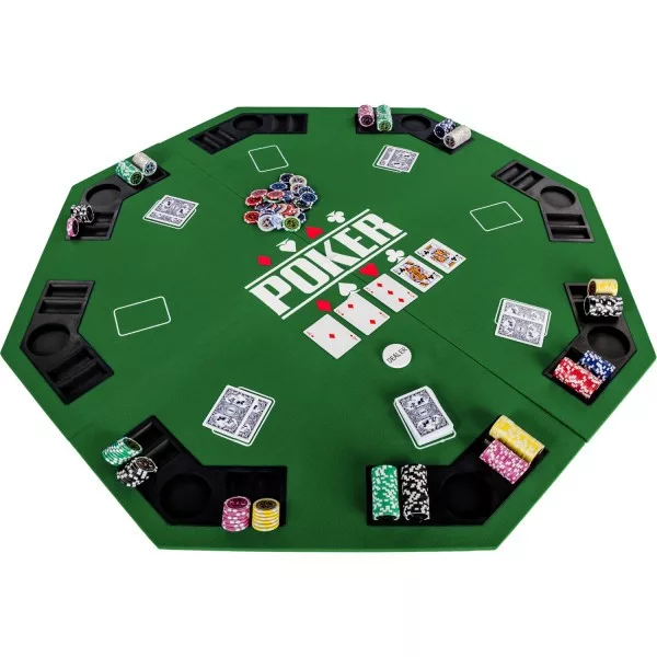 Poker table top with chip holder and cup holder.