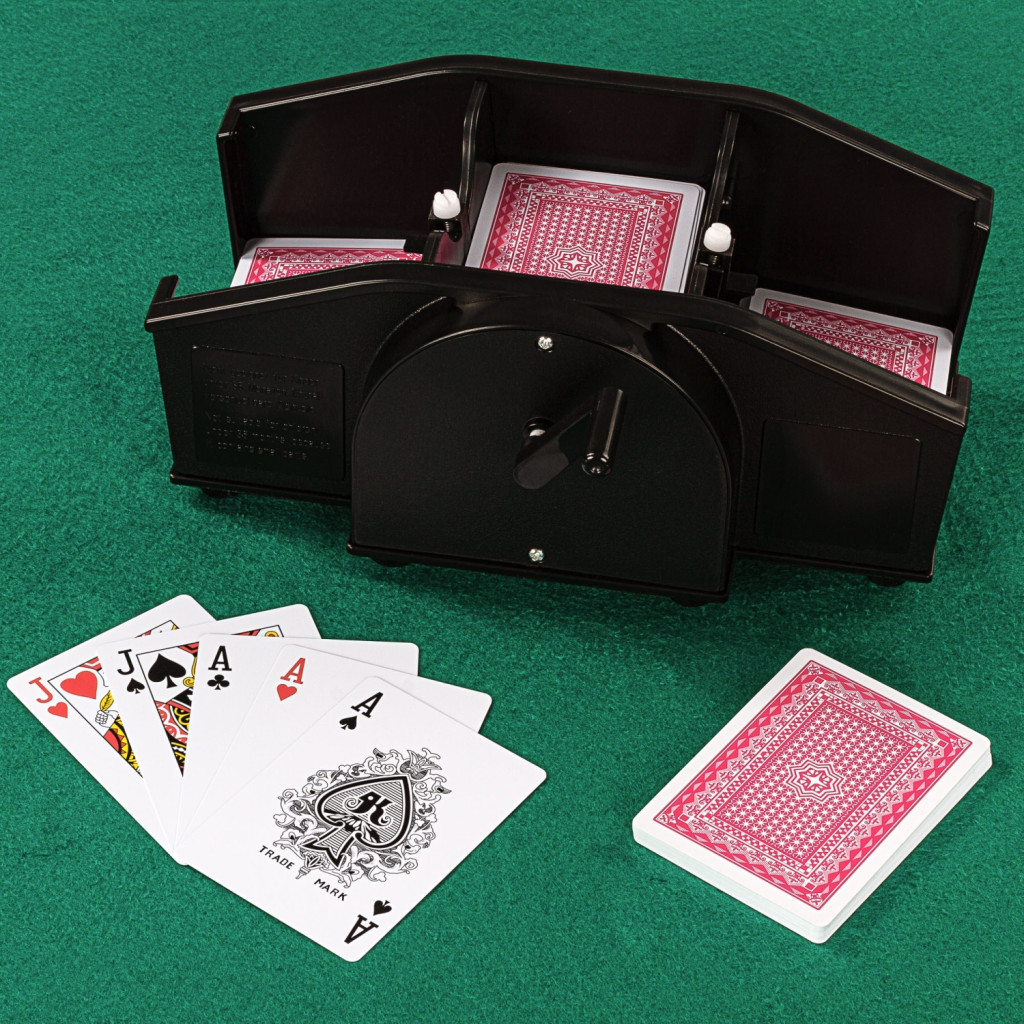 Mechanikus kártyakeverő gép fekete színben.