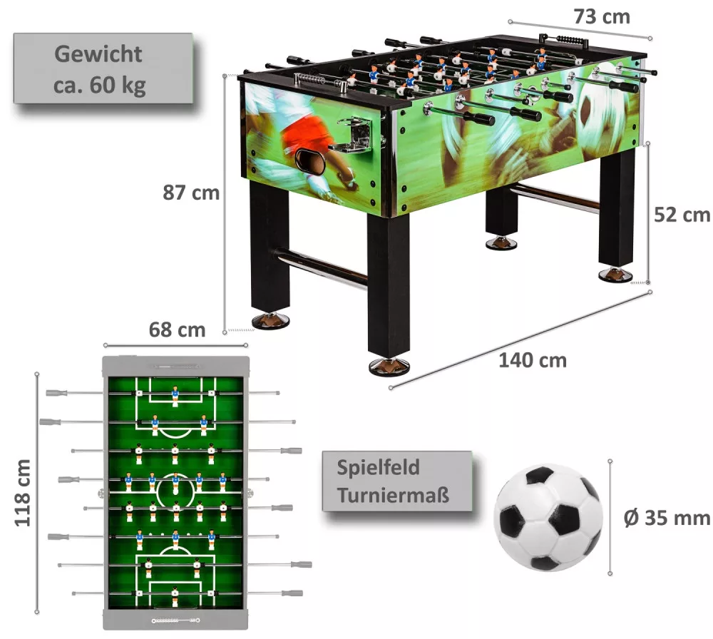 A játékfelület méretei megfelelnek a versenyasztalok követelményeinek.