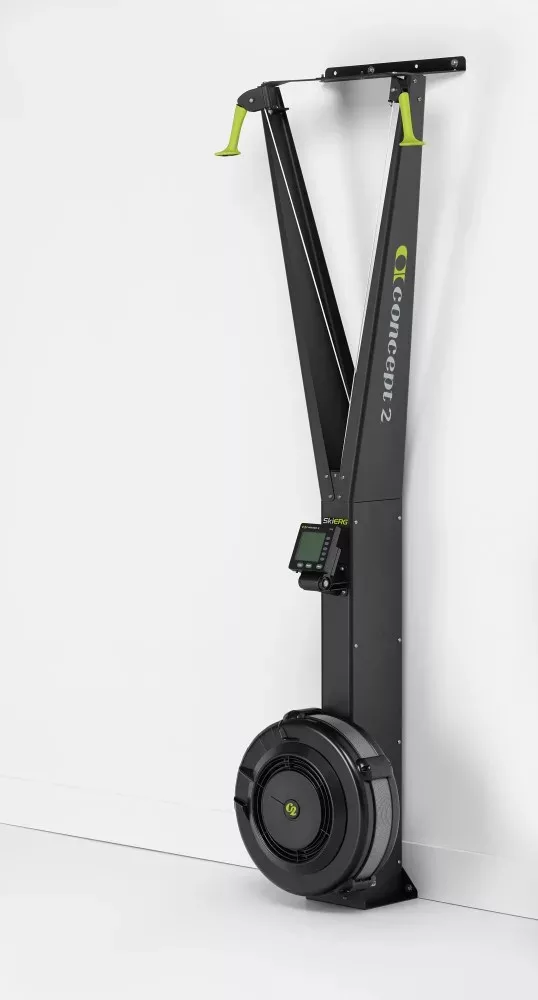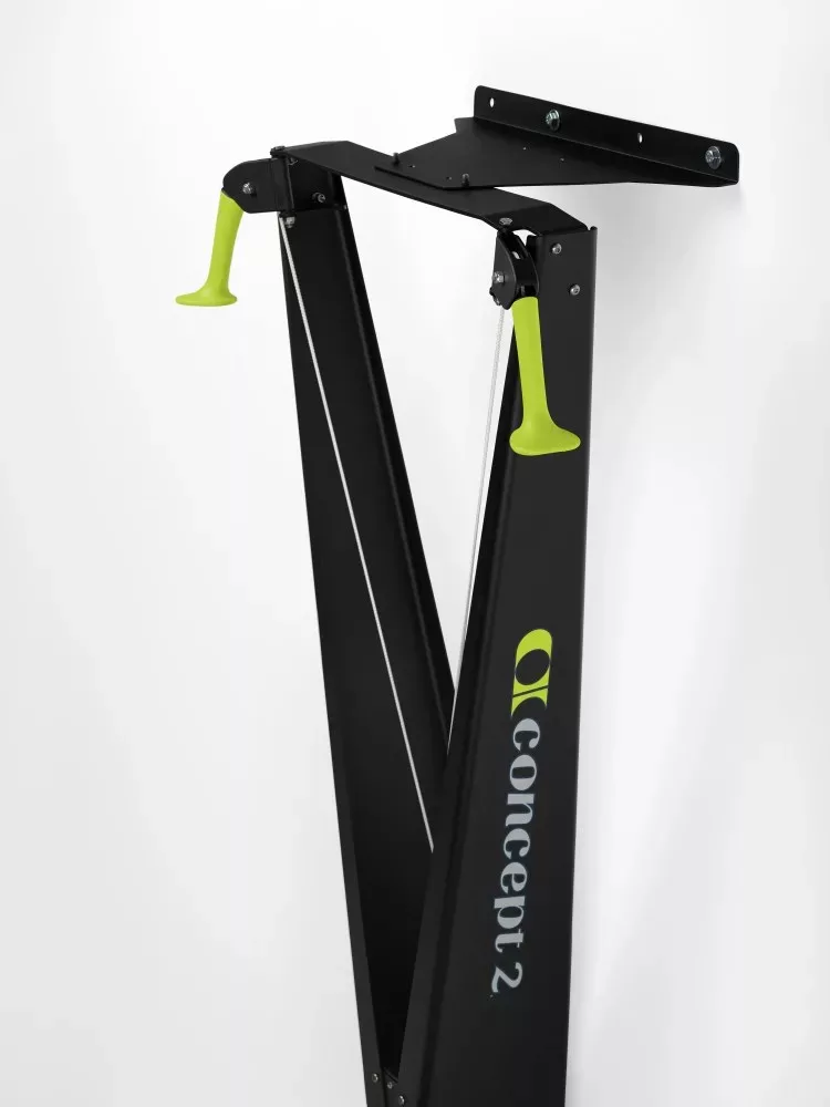 A Concept2 SkiErg, sífutó ergométer önmagában csak falra szerelhető, a külön kiegészítőként megvásárolható padlóállvánnyal válik mozgathatóvá.