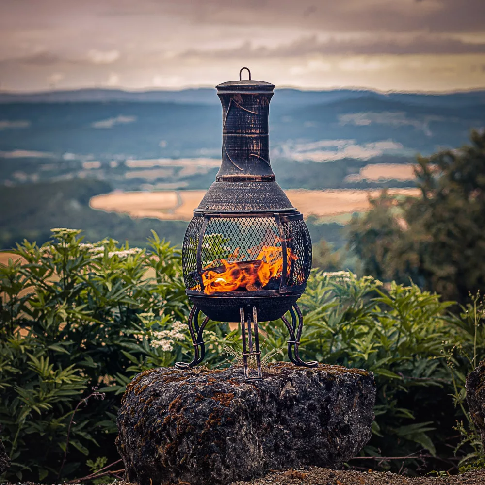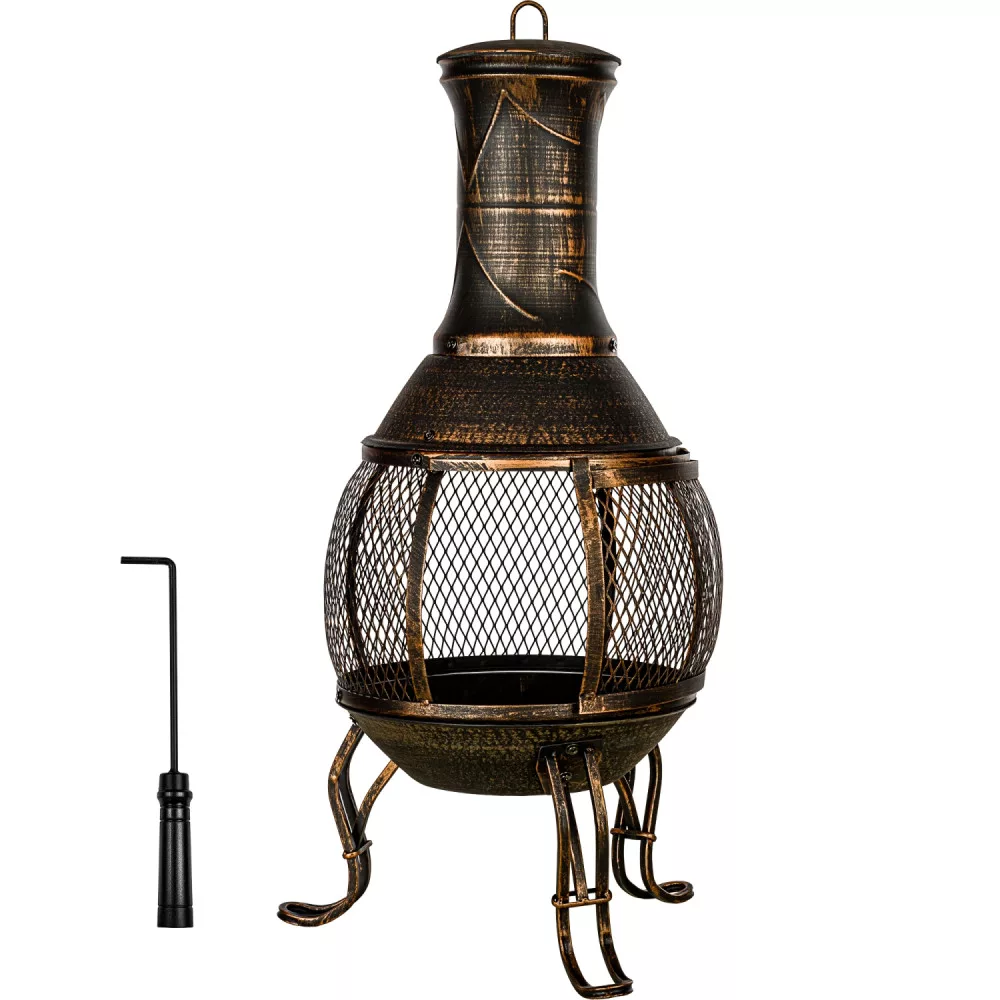 The package includes a grate, a poker, a spark guard and a lid for rain protection.