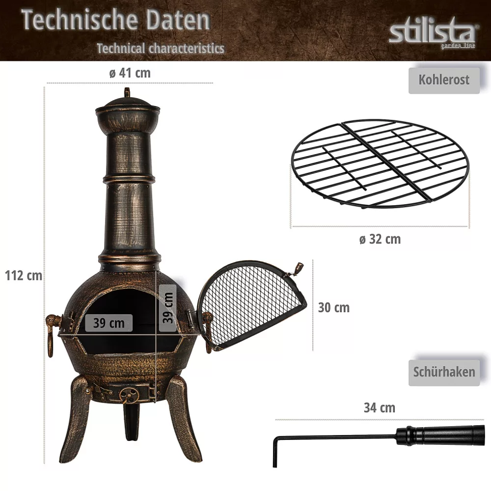 112 cm high STILISTA® outdoor stove is made of cast iron and steel