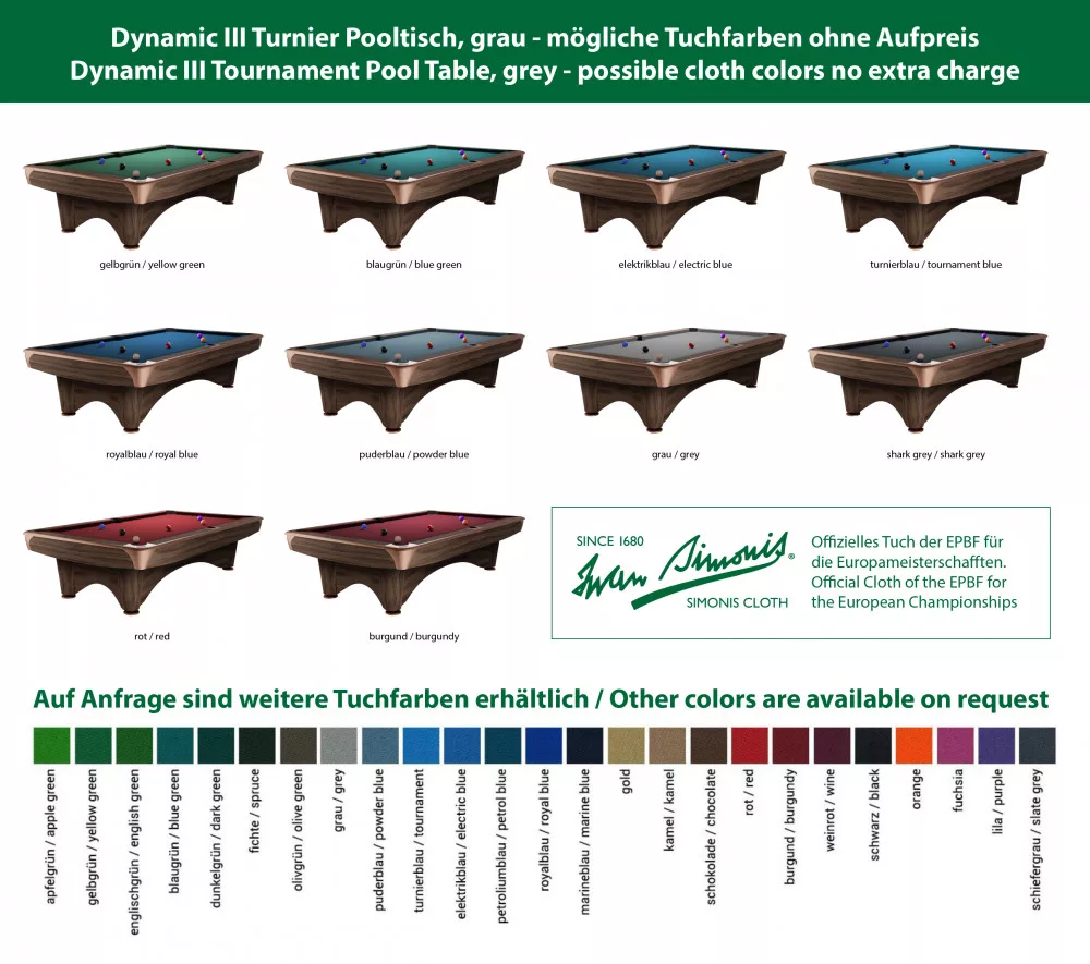 approved and certified by the EPBF (European Pocket Billiards Federation)