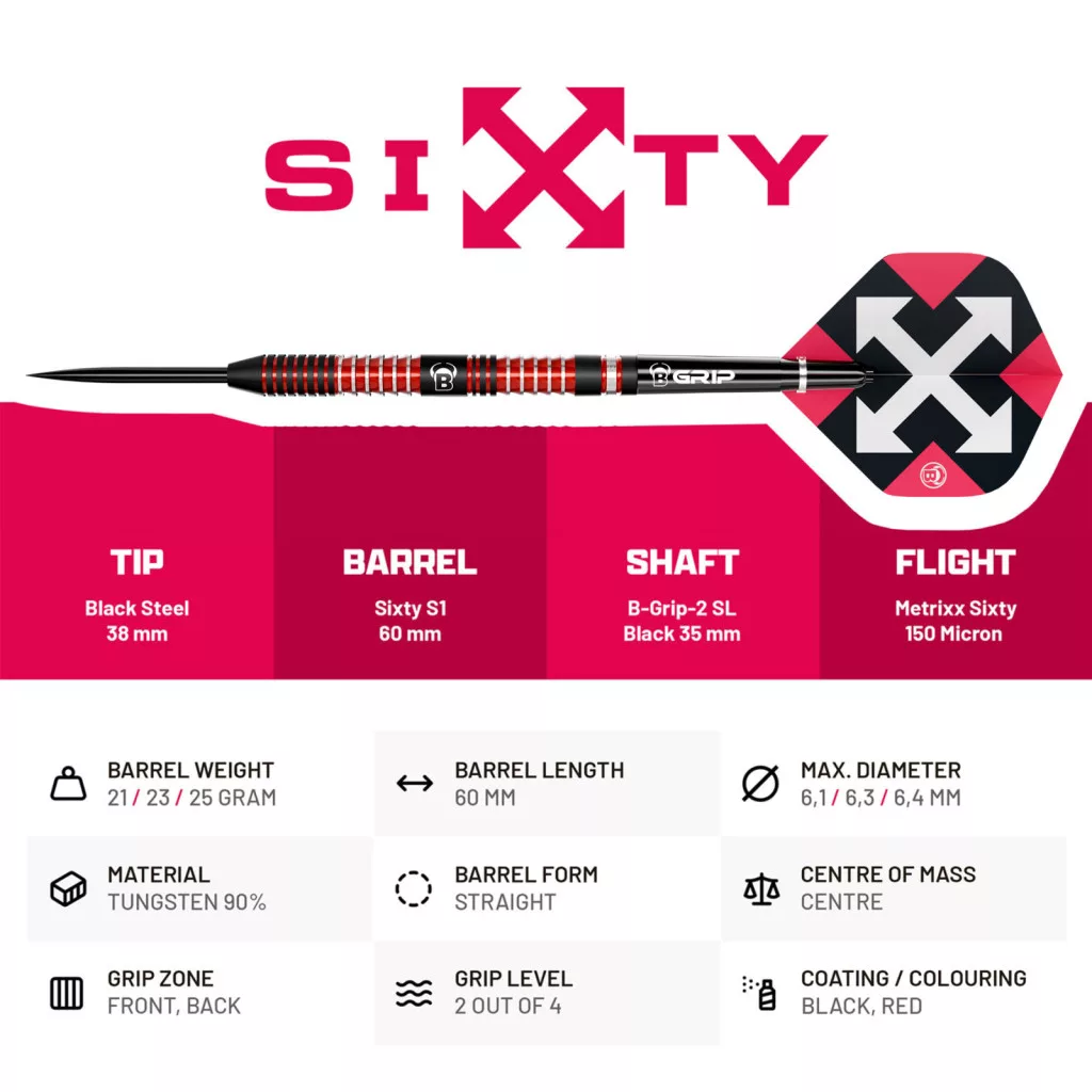 Dart szett Bull's Sixty S1, steel, 21g, 90%