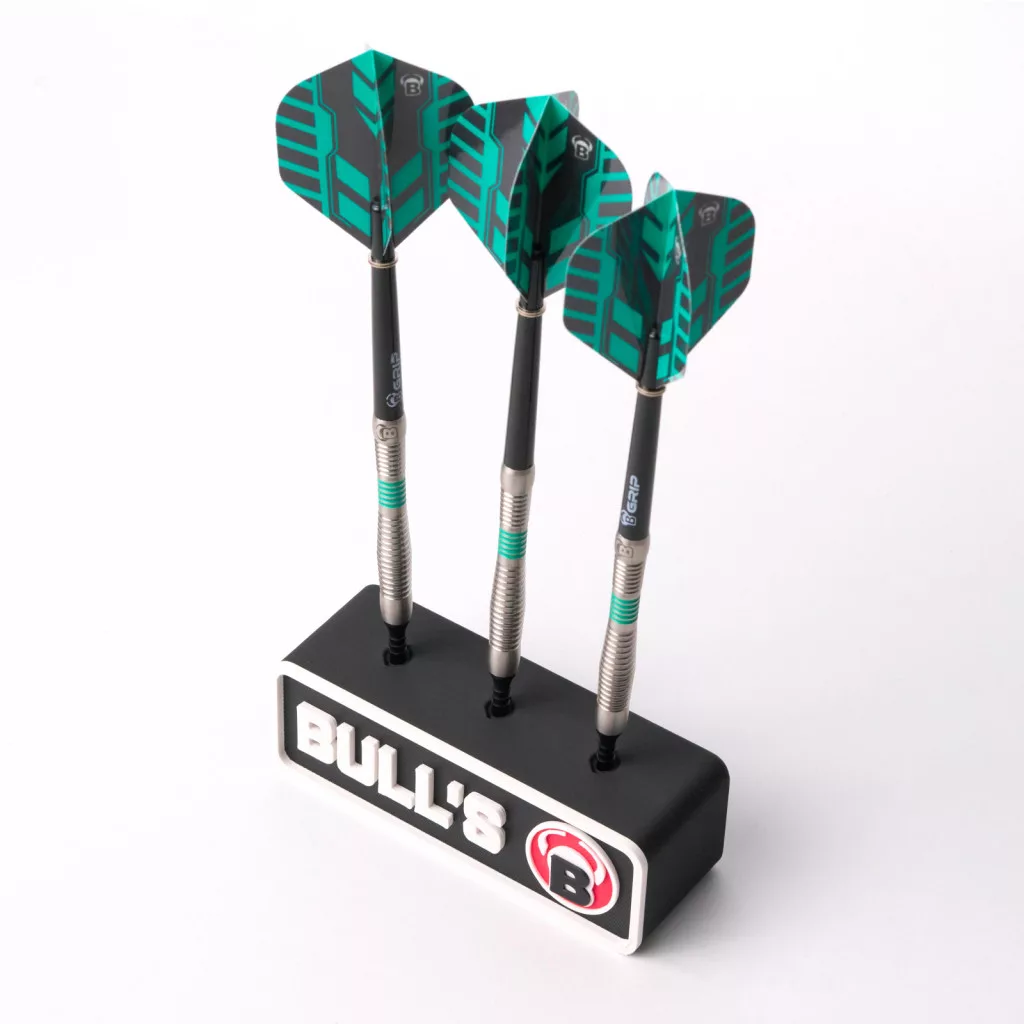 Kompakt, stílusos és funkcionális – a szögletes, fekete BULL'S darttartó elegáns megoldást kínál a darts készlet (3 nyíl) biztonságos tárolásához. A design a jobb oldalon található kerek BULL'S logót ötvözi a bal oldalon található klasszikus felirattal. Németországban 3D-nyomtatási eljárással gyártott tartó minőségével és sokoldalúságával győzi meg: szabadon elhelyezhető felületeken, de falra is felszerelhető – ideális otthoni darts felszereléséhez.