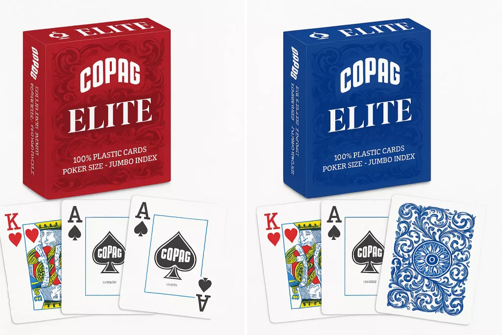 12 csomag PÓKER KÁRTYA 100% PLASZTIK, COPAG ELITE POKER JUMBO NAGY SZÁMMAL (6 DB KÉK + 6 DB PIROS HÁTLAPPAL)
