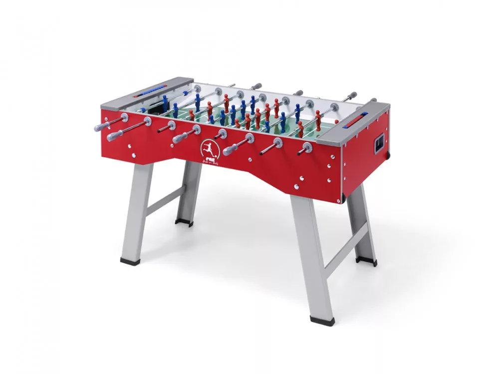 Strape-resistant, open, traditional Italian foosball table without coin tester.