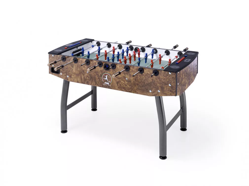 Strape-resistant, open, traditional Italian foosball table without coin tester.