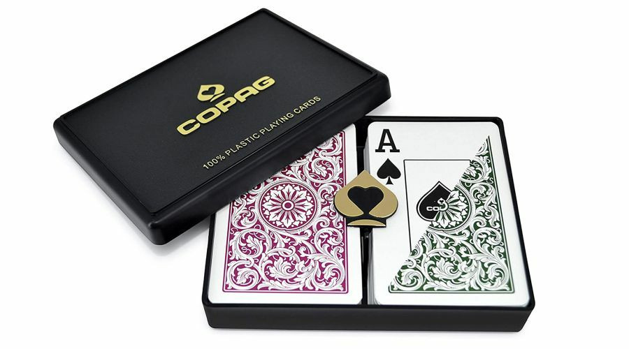 Copag plastic bridge card,2 Jumbo index,double pack, Green/Burgundy