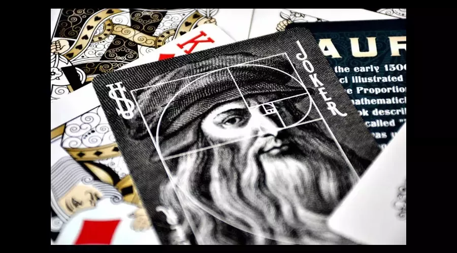 - 52 cards + 2 Joker cards depicting Leonardo da Vinci + 2 advertising cards