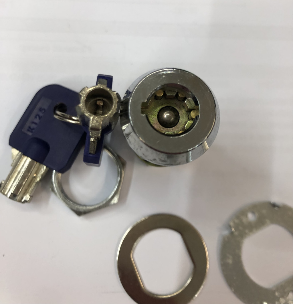Metal cased, 7 pins round key lock, the key design makes copying very cumbersome, the lock length is 28mm.The key numbering is different, we recommend for cabinets made of 19-20mm thick furniture board due to the length.