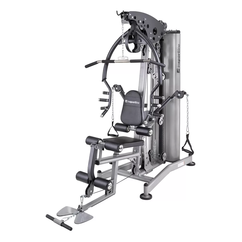 The inSPORTline Profigym C400 training tower gives you a variety of workouts at home It offers multiple options for training arm and chest muscles, shoulders, back and abdominal muscles, and legs. You have the choice of lower and upper pulleys, multifunction chest press and rowing with a few arms, pulleys for butterfly exercises and a leg stretching/bending station. The brick weight system to control the load totals 90 kg.