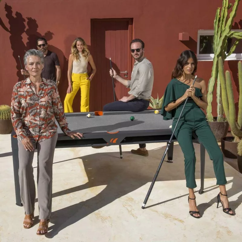 pool biliárdasztal kültéri Cornilleau Hyphen 7' sötétszürke (étkező fedlappal), terrakotta zsebekkel