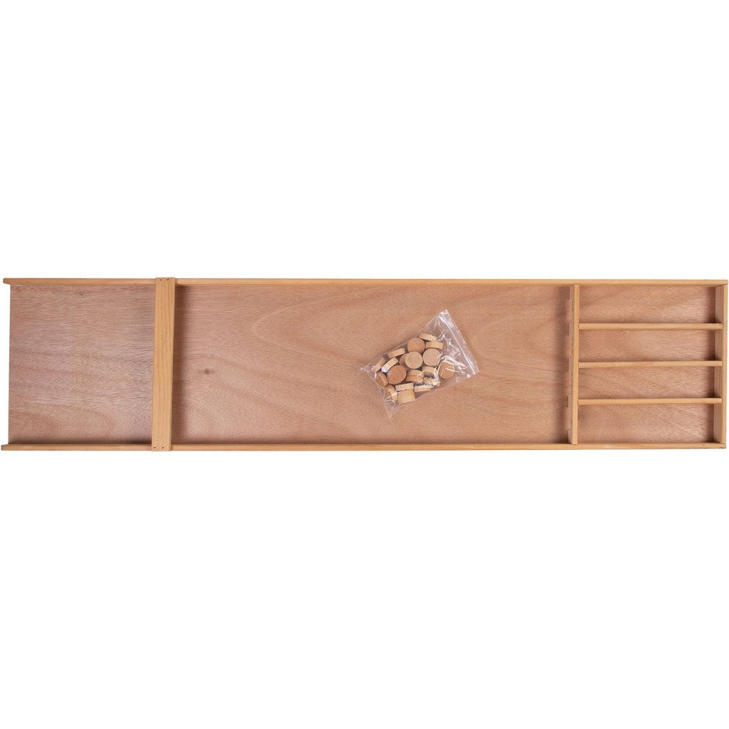 Ez a praktikus mini shuffleboard 122 cm hosszú, 28,5 cm széles és 3,5 cm magas.