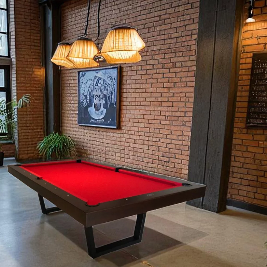 A Harlem biliárdasztal fa széleit betétek és fém Buffalo logó díszíti.