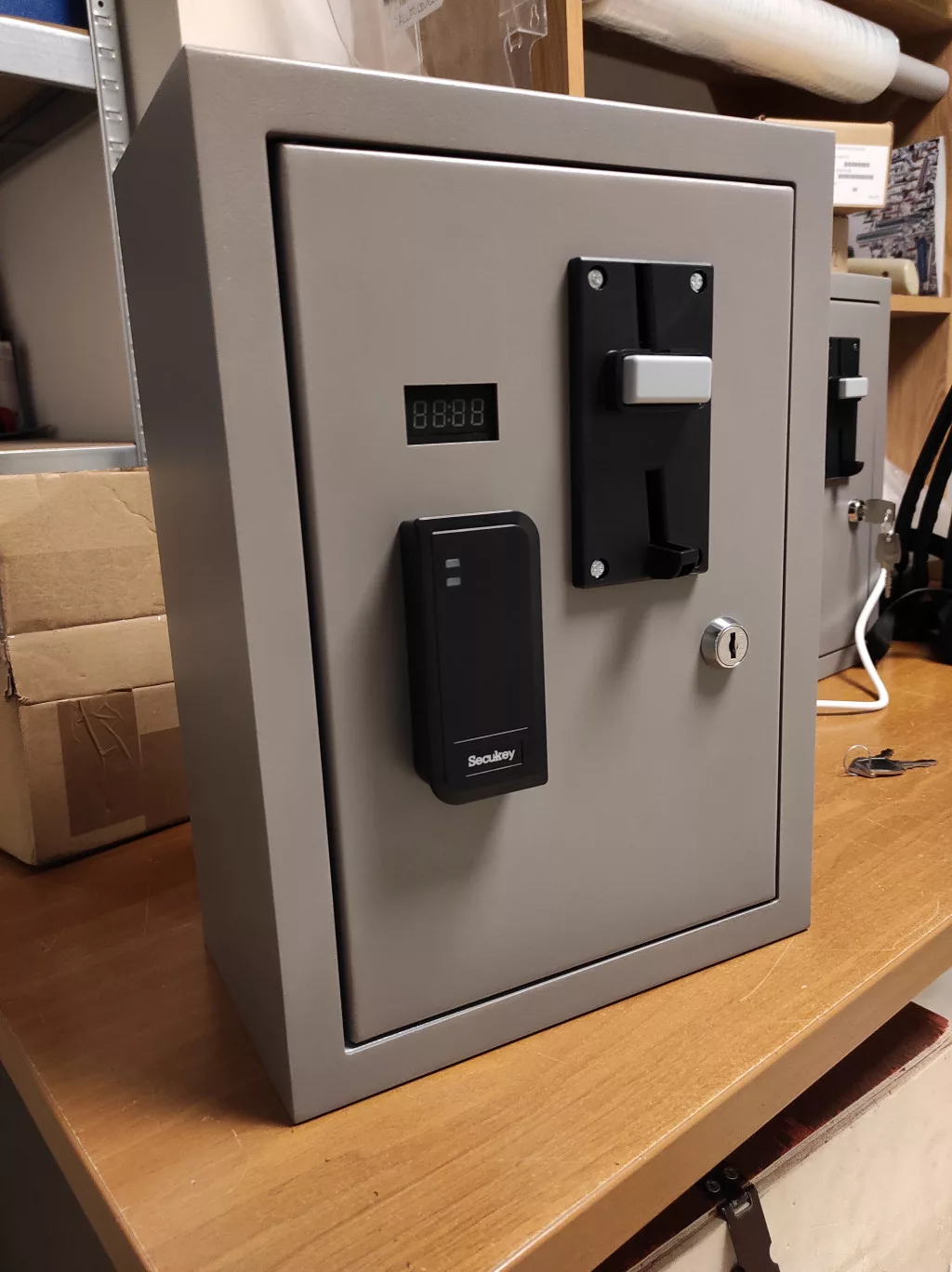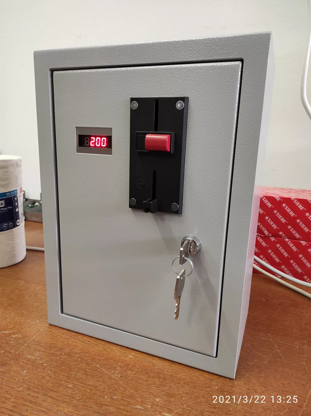 A készülék érmetároló kasszája az összes konkurens terméktől nagyobb kapacitású. Kasszadoboz mérete: 10x10x16,5cm
