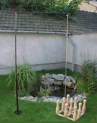Installation: the stand must be concreted. The crossbar and the hook on it must remain above the head for accident prevention reasons.