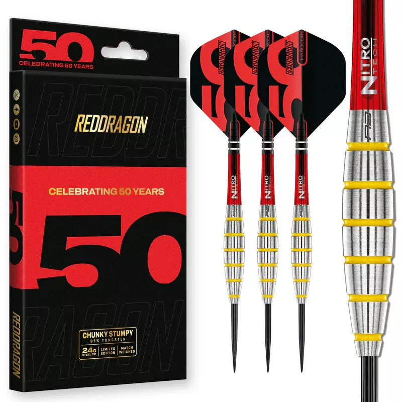 Introduced in the mid 1990’s, Chunky Stumpies were a true game-changer. Their bold, compact torpedo design delivered a rock-solid feel, exceptional control, and a throw that stood out in an era dominated by standard parallel barrels. This distinctive profile redefined what a dart could be, paving the way for new throwing styles that continue to evolve today.