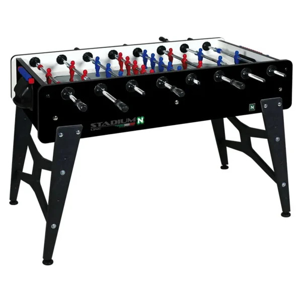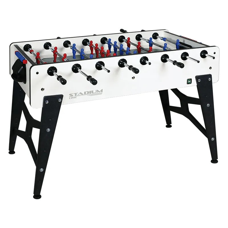 Karcsú vonalú asztali foci, ferde ABS lábakkal, amelyeket egy négy ponton rögzített keresztgerenda erősít meg, így az asztali foci rendkívül stabil, köszönhetően a 4 állítható gumitalpnak is.