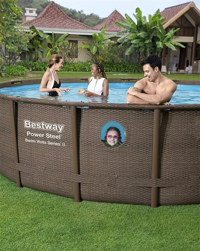 The Bestway® 5.49 m x 1.22 m Powerway® pool is the first choice for families with children, thanks to the superior construction of a steel frame designed for maximum strength and durability With minimal installation, this pool is the perfect answer to refreshing your backyard this summer.