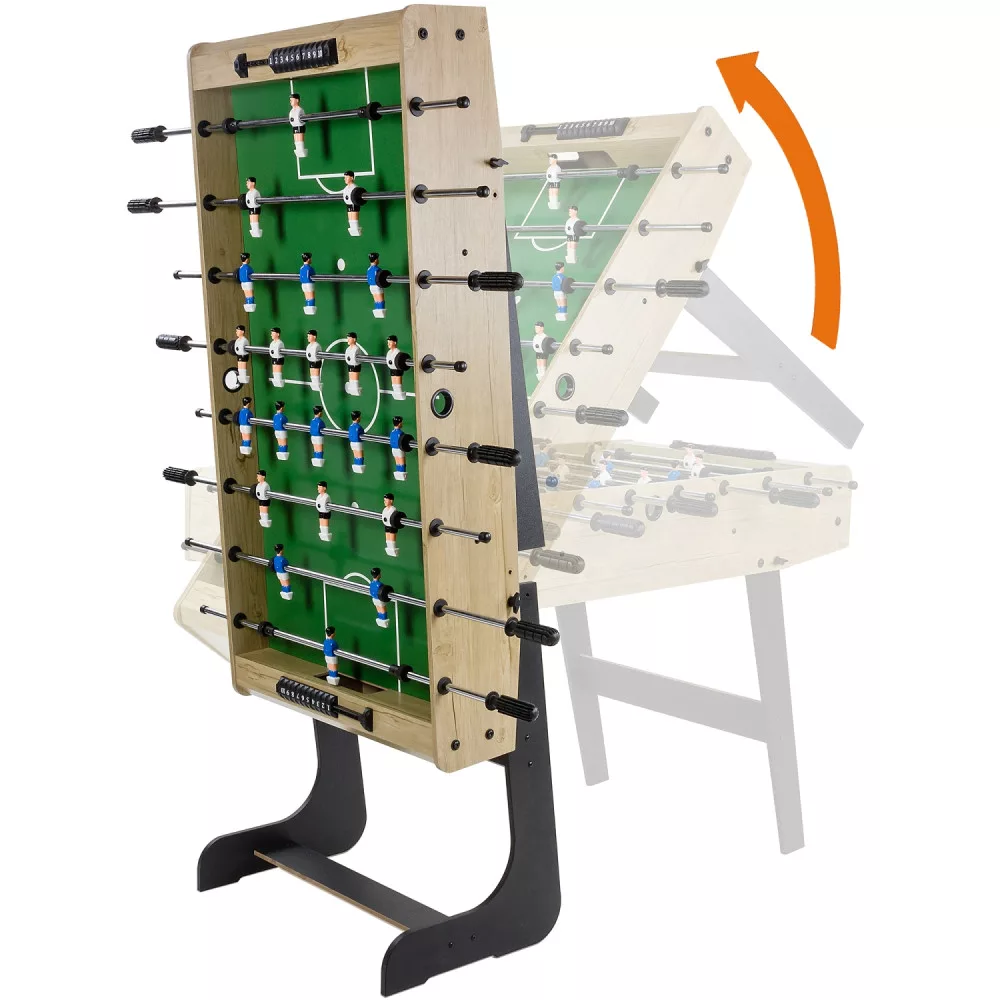 - dimensions: 121 * 61 * 79 cm- size of the track: 105 * 58 cm- material: MDF- wall thickness 15 mm- foldable- rubber grips- weight: 20kg- 2pcs soccer balls- boxed size: 124,5 * 60,5 * 12 cm