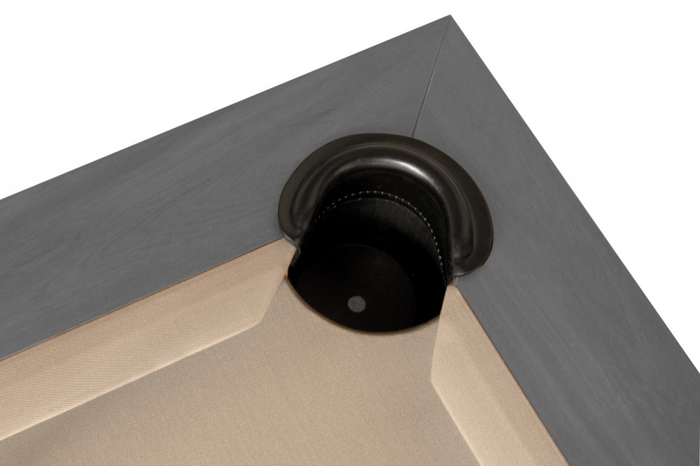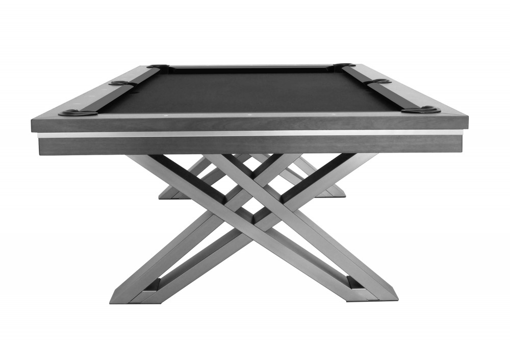 A Pierce by Rasson 8' biliárdasztal / étkezőasztal tömör keményfából készült, és világosszürke felülettel rendelkezik.