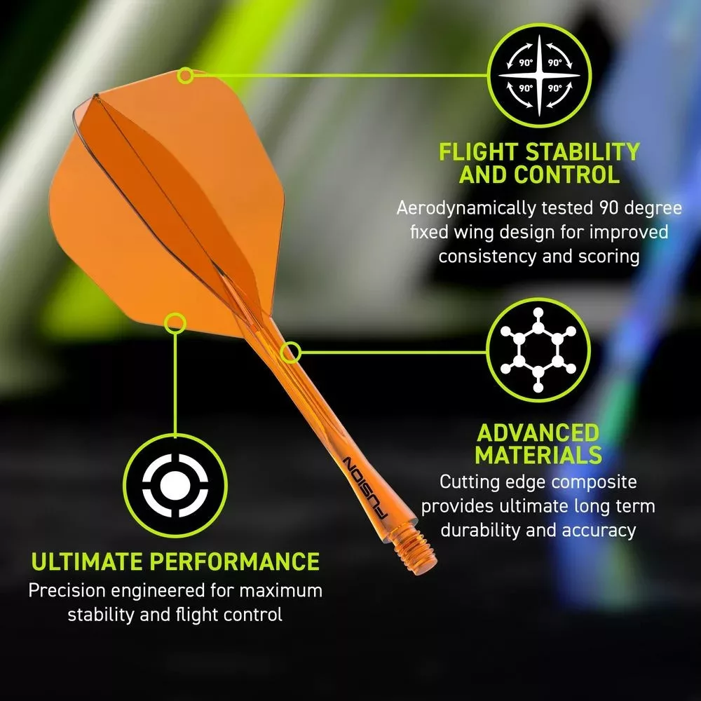 Darts toll és szár egyben Winmau Fusion No6 toll és hosszú szár, átlátszó narancssárga