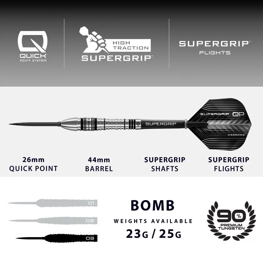 Dart szett steel Harrows QP Supergrip Bomb 25g, 90%