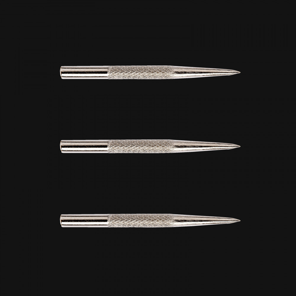 Recés steel darthegy 3db/csomag. Darthegy cserélő készülék szükséges hozzá. ( nem menetes hegy, fix steel szettekhez)32 mm hosszú hegyek, amiből egy átlagos dart testbe 5-6 mm fog belemenni, a dart testbe bele sajtolt fémhegy hossza kb. 26-27 mm lesz. A feltüntetett ár 1 csomagra vonatkozik.