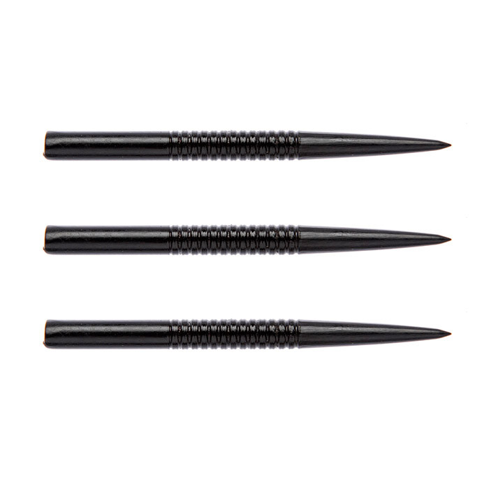 Fekete színű, gyűrűs recézésű, acélból készült steel darthegy 3db/csomag. Jobb fogást biztosít azoknak a játékosoknak akik a hegyre teszik az egyik ujjukat,kevésbé csúszik, jobban irányíthatóvá válik ezáltal.Darthegy cserélő készülék szükséges hozzá. ( nem menetes hegy, fix steel szettekhez)32 mm hosszú hegyek, amiből egy átlagos dart testbe 5-6 mmfog belemenni, a dart testbe bele sajtolt fémhegy hossza kb. 26-27 mm lesz.A feltüntetett ár 1 csomagra vonatkozik.