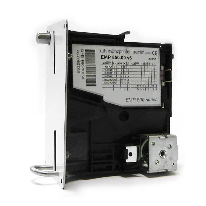 | Az EMP 800 érmevizsgáló a WH Berlin kiváló minőségű érmeelfogadó családja. Csatlakozatása és a kínálatban elérhető szabványos kommunikációk biztosítják az eszköz kompatibilitását, beépíthetőségét. Az elérhető verziók között műanyag és fém előlapos, vagy beépítőkeretes, kül és beltéri változatok is megtalálhatóak. Kifejezetten ajánlott nehéz körülmények között üzemelő automaták biztonságos érmekezelésének biztosítására, bármilyen időjárási körülmény esetén. Parkolórendszerek, autómosók, jegyauomaták kültéri alkalmazások érmekezelő rendszereihez ajánlott. Az egyedülálló 40Mhz-es processor lehetővé teszi 32 féle érme biztonságos megkülönböztetését. USB, CCTalk, MDB és Pulse interface elérhető. |
